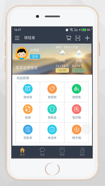 基于移动端,以智能手机为载体,结合分销管理、客户关系管理、微信平台等特色功能,提供零售、店务与VIP会员服务等一系列解决方案,实现门店终端及会员管理更加智能化、便捷化和数字化。为服装行业打造移动办公一体化服务平台,让导购提升业绩,让管理者随时随地了解掌控销售动态,更好进行终端管理。