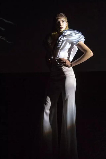 ▼以艺术的手法再塑中国东方美学的诗性精神,在手工匠作的缝制中绵延千年历史的经纬之思。整个系列以女神为原型展开设计,运用中国传统服饰的特点结合当代时尚来演绎。服装以真丝缎、真丝绡为主,面料机理为压皱、手工织造。整组系列给人以灵动、飘逸的感觉。展现丝绸之路上的雪山素洁雅致,内静和美,也体现芭蒂娜女性摩登性感、强势迷人的现代艺术。